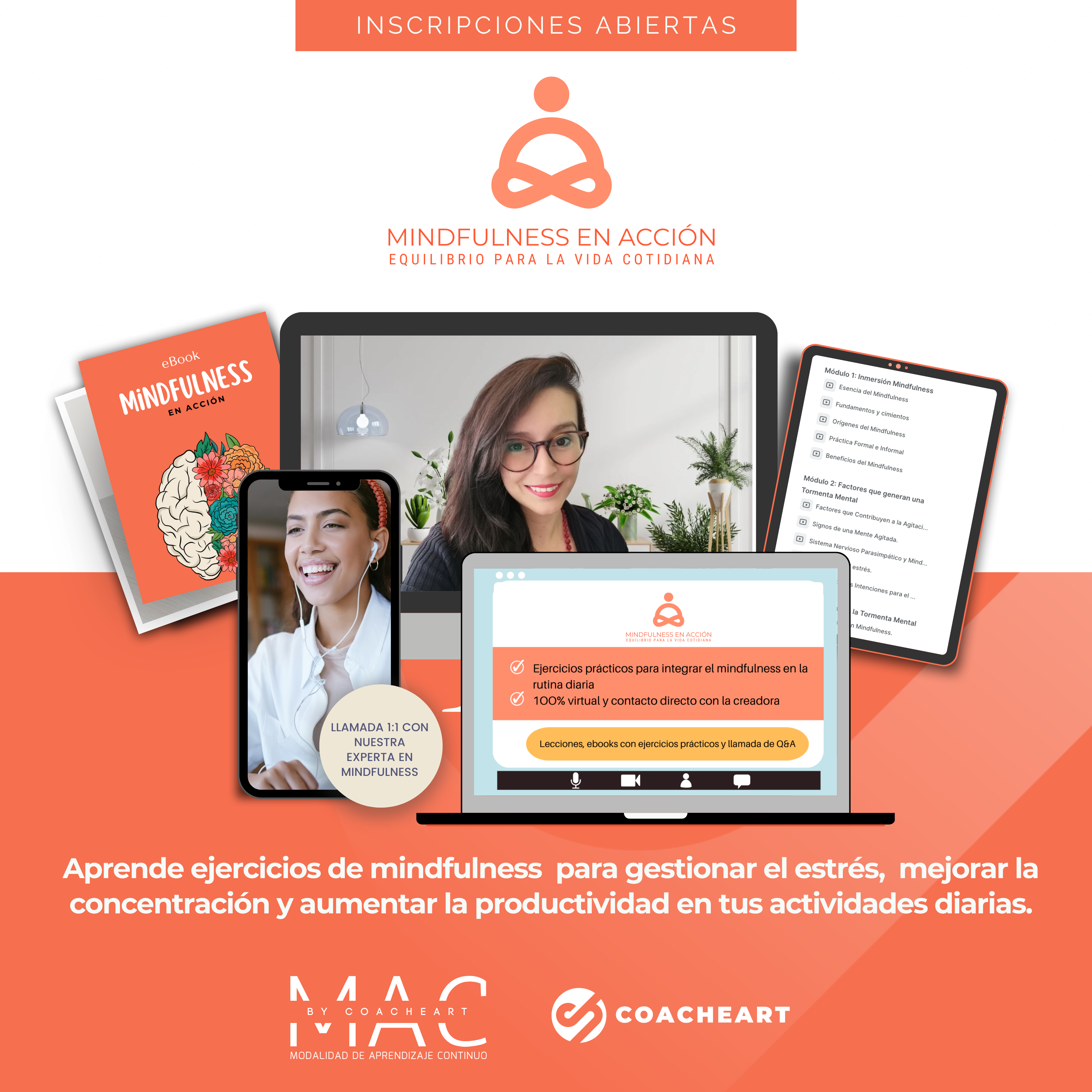 En Mindfulness en Acción: Equilibrio para la Vida Cotidiana, tendrás todo lo que necesitas, desde conocer el mindfulness a profundidad, cómo hacer diferentes ejercicios en tu vida diaria hasta el paso a paso para acompañar a otros.